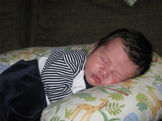 Carson is doing great. Growing so fast. He weighed almost 11 pounds last week...the boy loves to eat. He is smiling so much and is cooing. He's such a sweet boy! What a joy he is to have in our lives!